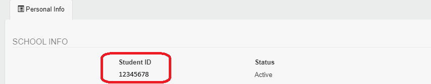 - Your Student ID number will be listed at the top of the page under the School Info section.