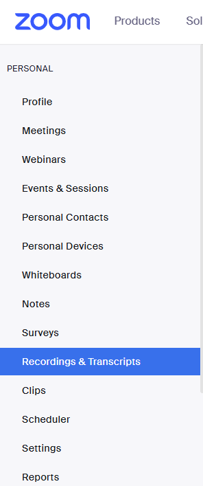 - View your recordings by clicking Recordings and Transcripts on the left hand side.